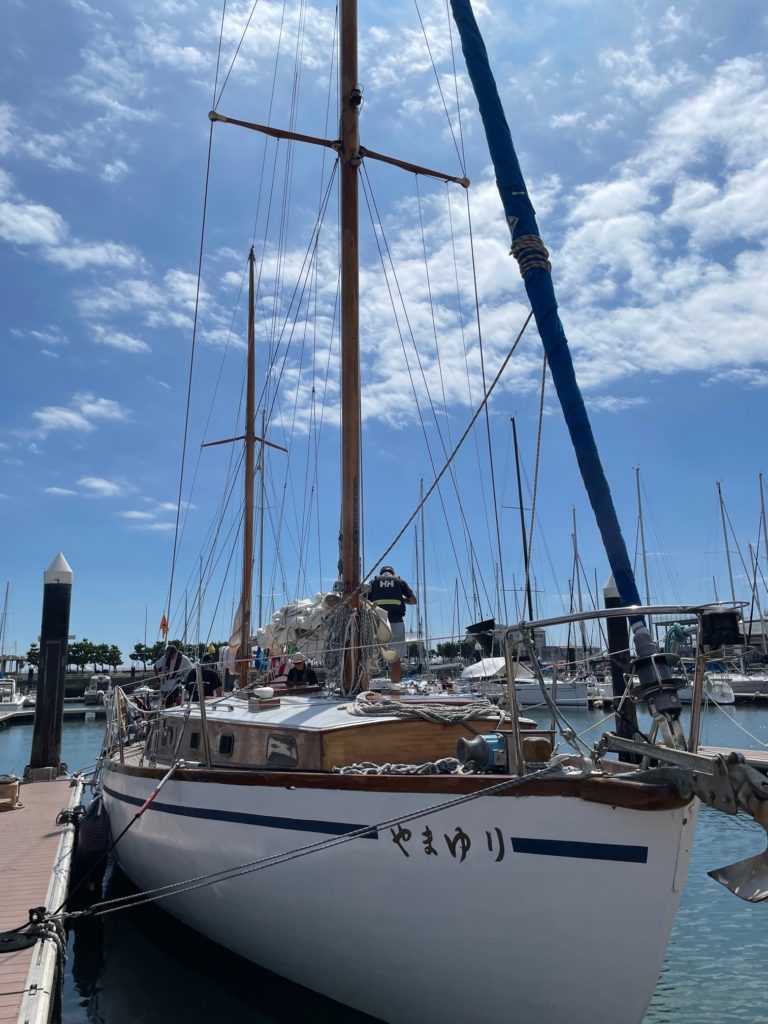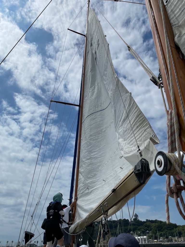 2本のマストに白い帆をいっぱいに張り、湘南の海を30人乗りの大型ヨット「やまゆり」が疾走します。