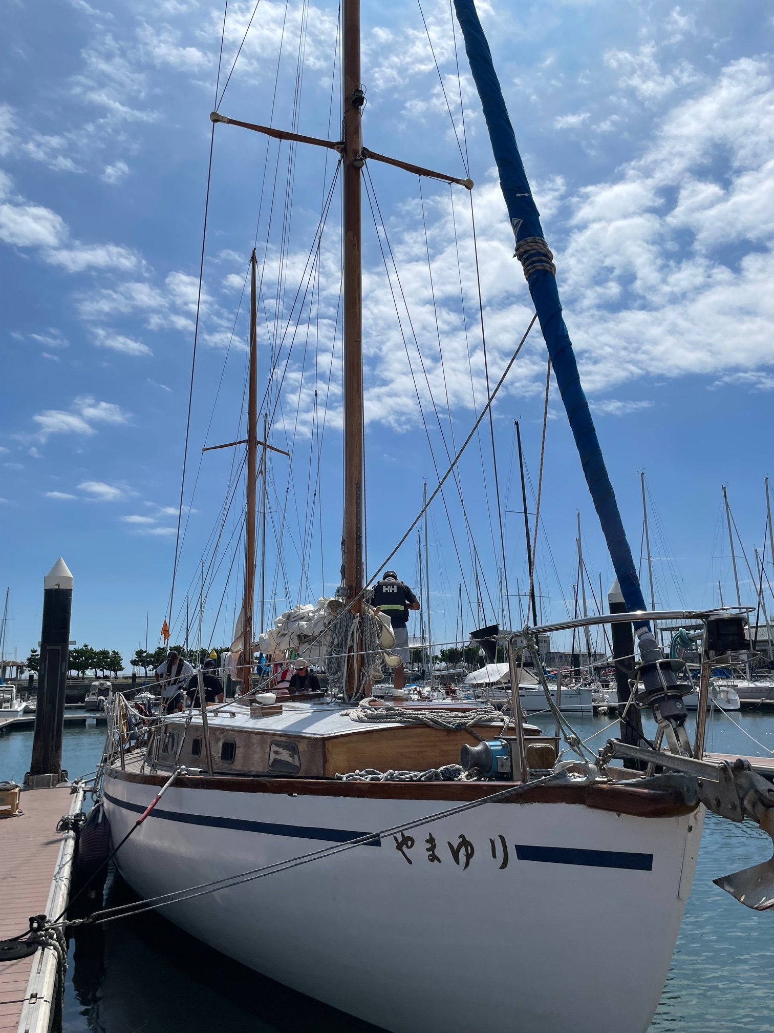 2025年9月6日(土)午前11時、玉川会の世話人7名とゲスト1名は「やまゆり」に乗って江の島ヨットハーバーを出港し、台風一過、快晴の江の島沖でクルージングを体験しました。