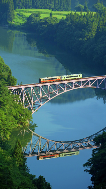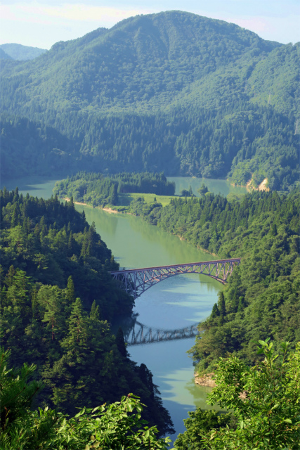 作品をどのように纏めるか、人それぞれ、ケースケースですが今回は対象を一つに絞り季節ごとの変化や環境の変化を映像に捉えようとしたものです。具体的には只見線(一日の本数が数本というローカル線)の沿線にある第一橋梁を眺める構図が写真になるところです)。私の一番の狙いは朝霧が立ち込めた中を列車が橋梁を通過する「構図」ですがこれを撮るのに4年かかりました。写真1,2は春、3は夏、4,5は秋です。同じ場所でもかなりの違いがあるのにお気づきいただけると思います。